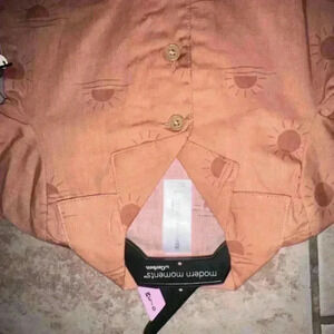 This is a cute baby onesie with a sun print. It is brand new with tags and looks to be in excellent condition. It would be a great gift for a baby shower or for a new baby.