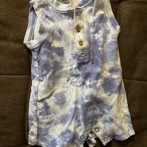 One short sleeve with whale design and one no sleeve light blue tie dye