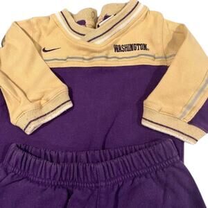 It includes a Nike Washington State sweat suit, an Amy Coe Rock & Roll outfit, some Carter's Classics jean overall shorts, a Carter's blue lion and tiger onesie, and an OshKosh beige with red stripe sweater vest.