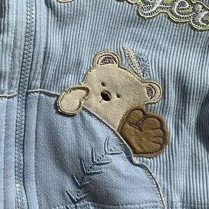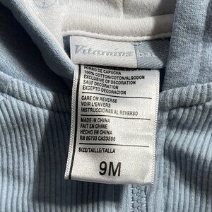 Baby Boy Vitamin Baby Baseball Bear Blue Ribbed Hooded Zip Up Size 9 Months Cute