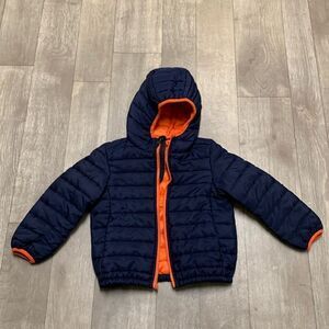 15” from top of shoulder to bottom 13” armpit to armpit 10” armpit to end of sleeve. Size 3T. Gently used. No holes, tears or stains. Navy blue/ orange. With pockets.