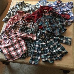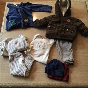 Tons of onesies long and short sleeved, pajamas, vests, sweaters, long sleeve collared shirts, and pants! All pictured in sections I will sell individual as a section or all as one. Open to offers. Yes these have been worn but I'm kinda a freak to stains on shirts so basically none of them have stains. I also as you can see have a shopping problem since some still have tags on them! Cross posted as well! Thanks for visiting!
