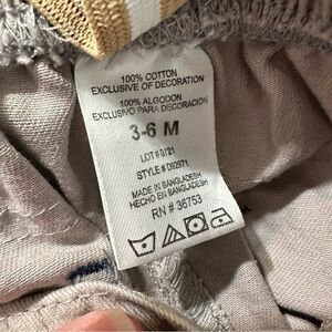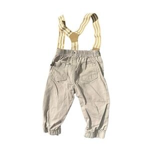 Baby Boy size 3-6 months tan joggers with adjustable suspenders, like new, smoke and pet free home