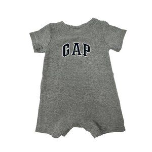 • Grey Outfit with "GAP" on Front with "baby" on the Letter A in Black & White, Short Sleeves, Snaps at Crotch