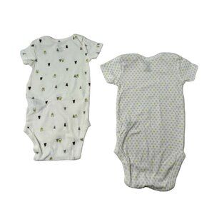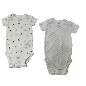 Baby Boy's - 4 Body Suits in White with Designs in Greens and Greys - Size 3 M