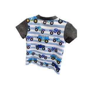 Baby Boys Monster Truck Striped T-Shirt 3-6M By Mini Threads 93% Polyester & 7%