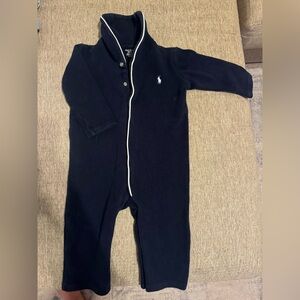 Baby Boys Ralph Lauren Navy Blue Sweater Romper 12 mos