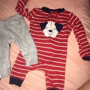 Jordan onesie, gray joggers and a puppy One piece. Size 3Mn