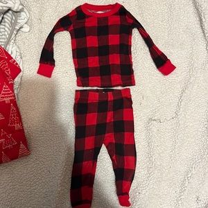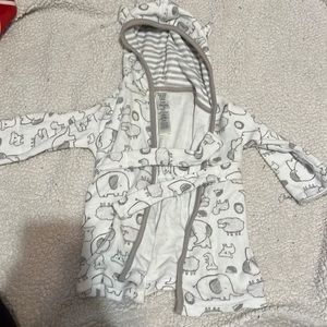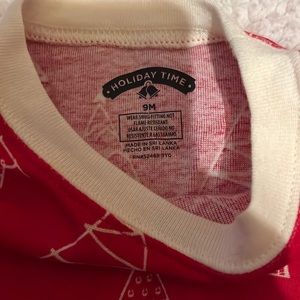 Get ready for christmas. 2 pajama sets , one is 9 months the other is 12 months although the 12 months runs small. The robe is 0-9 months. All 3 for one price. Lightly used. No damage