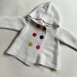 Baby Cardigan Hooded Jacket White Knit Colorful Buttons 3-6mos