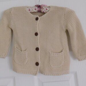 Cute cotton sweater jacket, with brown, wooden buttons, unisex. Size 24 months.
