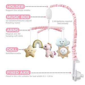 Baby Crib Mobile with 3 Modes Musical Box,12 Lullabies, Pink, Nursery Toy