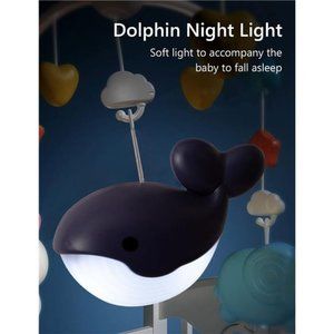 🧿Musical & Light Baby Crib Mobile. Music box with many children's songs& lullabies, can be carried separately or tied to the bed arm and has Volume Adjustment Function. The Dolphin Night Light is accompanied by sweet music or sound to bring a comfortable sleeping environment for your baby.