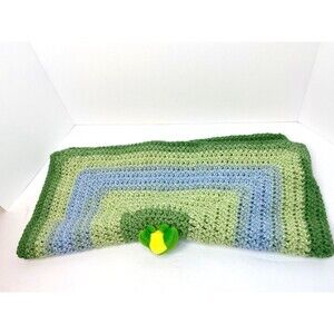 This handmade Baby Crochet Lovey Security Blanket Toy is the perfect addition to any nursery. Measuring 18" x 18" in size and featuring a plush frog theme, this multicolor blanket is sure to be adored by boys of any age.