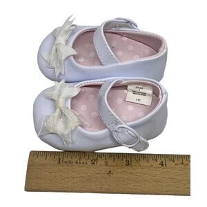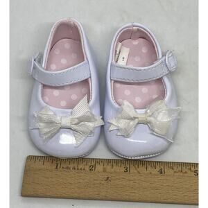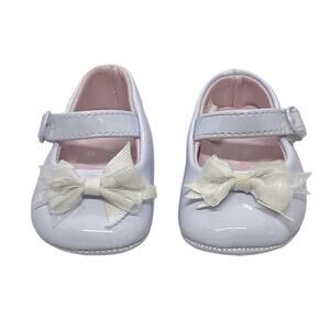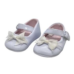 * Baby Deer Girl's White Patent Skimmer Crib Shoes 1M Infant Hook & Loop Closure.