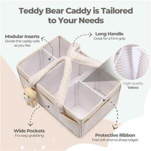 🧿BONUS TEDDY BEAR CHARM AND LUXURIOUS PLUSH SHERPA EXTERIOR : Crafted with a premium plush sherpa exterior, our Baby Diaper Caddy feels as cozy as it looks. Each caddy comes with an adorable teddy bear charm, adding a touch of delight. It's a small detail that makes a big impression, perfect for gifting
