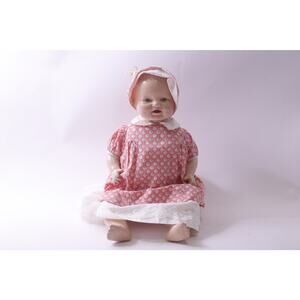 Baby Dimples, Horseman, Vintage, Composition Doll, Red Dress, Retro Toy, FLAW
