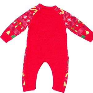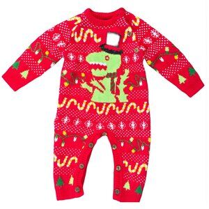 Baby Dinosaur Christmas 12M Knit Romper With Holiday Design and Button Closure