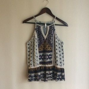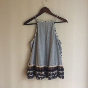 Marrakech my drift. Serve the people Moroccan heat with this tank. This baby-doll style is flattering for the midsection. Gray base color.