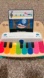 Vibrant wooden toy piano with rainbow keys and music cards. Perfect for young musicians.