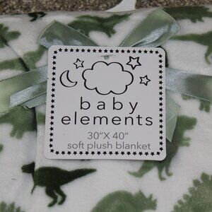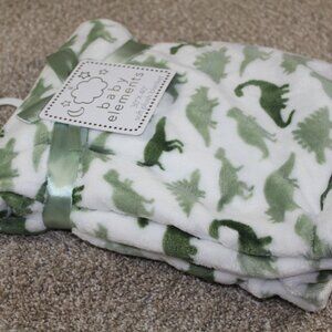 Baby Elements Dinosaur Blanket Soft Plush Fleece White Green Infant Boys NWT