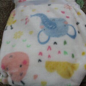 Baby Elements Safari Soft Plush Fleece Blanket Infant Girls White Pink Hippo NWT