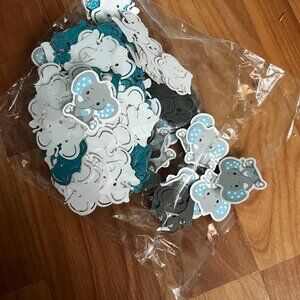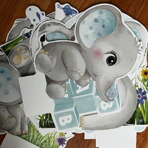 Adorable mix of blue-themed elephant decorations—perfect for a baby shower, gender reveal, or first birthday. Includes unique die-cut elephant centerpieces (shown in photos), coordinating cups, plates, napkins, napkin tissue, and more.