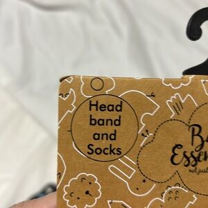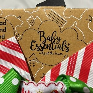 Baby Essentials 0-6 Christmas bow bootie socks headband My First Christmas NWT super cute accessory for babies first Christmas colors are red green white . Bow is dramatic and exaggerated on both the knit socks and the head band bow . Headband is on elastic wide strap that is stretchy and fits all baby head size 0-6 and probably can stretch for up to a year
