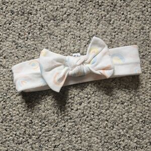 Adorable Baby Essentials 4-piece set for baby girl. Made from a soft cotton-blend, it includes a long-sleeve crew neck bodysuit with a snap-button closure for easy diaper changes, straight-leg pants with an elastic-waist and a bow accent, and a matching headband and socks to finish the look.