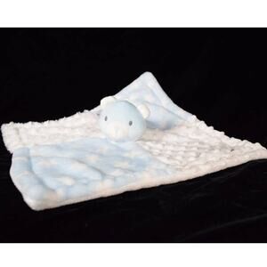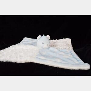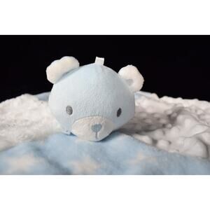 Baby Essentials Lovey Plush Blue Bear Blanket 4-Square Pattern Blue & White