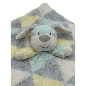 The Baby Essentials Lovey Security Blanket is a soothing comforter with a soft dog design and satin trim, perfect for comforting babies. Its multicolor pattern adds a playful touch to any nursery setting.