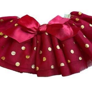 Baby Essentials Red Christmas Skirt Tutu Golden Polka Dots satin Bow