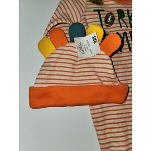 Baby Essentials Turkey Time Striped Footed Romper & Hat Set Orange Thanksgiving