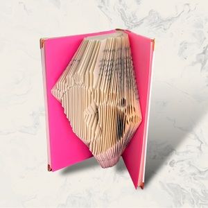 Upcycling books to art! A book where each page is very precisely measured & folded to create “Baby Feet”. Each corner has a decorative metal protector, adding to it’s beauty. 😃