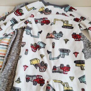 Baby Footed Pajamas Set Of 3 Size 2T & 4T Cozy Fleece With Vehicles & Stripes