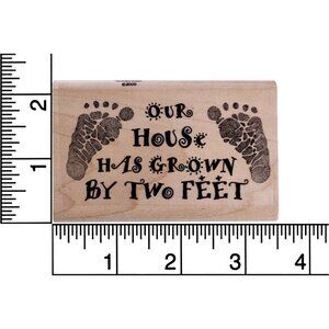Baby Footprints Rubber Stamp "Our House Has Grown By Two Feet" Stamp Oasis Wood