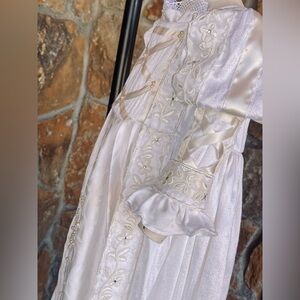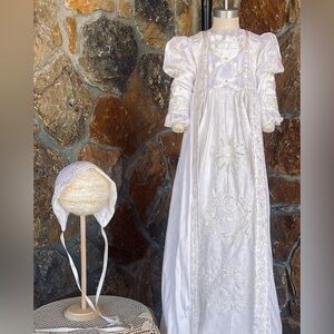 Renaissance inspired ivory baby dress is perfect for any special occasion such as a christening, baptism, or Easter Embrace the sacred tradition of Christening with this exquisite Renaissance-inspired gown and bonnet.