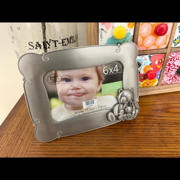 Silver frame. Never used. Tiny little scratch on the left side. Zoom in to see.