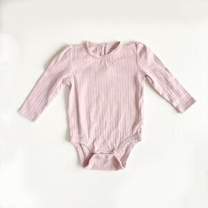 Baby GAP long sleeve onesie in blush pink. Snap closure at crotch.