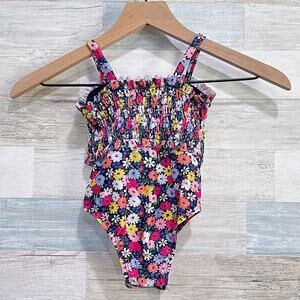 Baby GAP Floral Smocked One Piece Swimsuit Blue Pink Toddler Girls 2T 2 Years