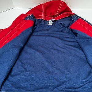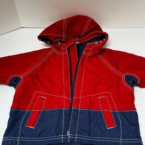 Baby GAP classic Red & Blue jersey-lined Hooded rain coat 12-18 Mo EUC