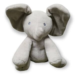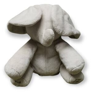 The GUND Flappy the Elephant Plush Toy will give your child hours of fun interactive play. With the push of a button, the adorable ears flap while you play an interactive game of peek-a-boo or sing along with the tune "Do Your Ears Hang Low", Ears move and flap during play. Good preloved condition with minor signs of wear. All animations work, requires 3 AAA batteries which are included.