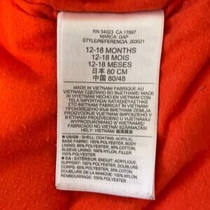 Baby Gap 12-18 Months Snowsuit Hooded One Piece Olive Green Orange Pockets Flaws
