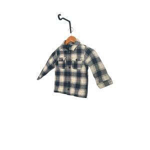 Cozy and classic! This Baby Gap quilted shirt jacket is perfect for layering on cool days. Features a soft flannel outer in a timeless navy/white plaid and a quilted lining for extra warmth. A great "shacket" for your toddler! Excellent, gently used condition.