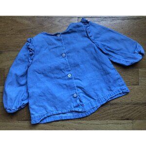 Baby Gap 6-12M Long Sleeve Light Denim Jean Ruffle Blouse Top