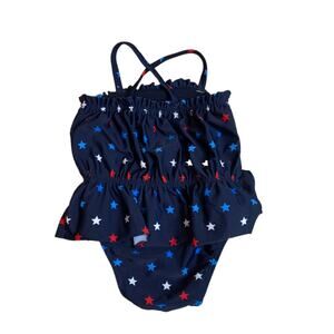 Baby Gap Blue Ruffle Star Print Peplum Swimsuit 4th of July Baby Toddler Girl 12-18 Months
