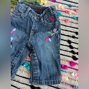 Baby Gap Colorful Flower Tree Embroidery Felt Appliqué Blue Jeans Sz 3-6 Months