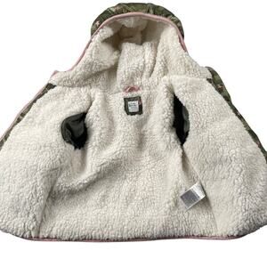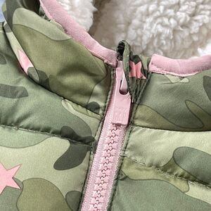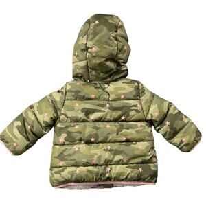 Baby Gap Cozy Soft Puffer Coat 2 yrs 2T Green Pink Camo Star Print Sherpa Lined