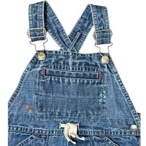 Baby Gap Denim Shortalls Toddler XL 18-24 Denim Jean Overalls Embroidered 2001