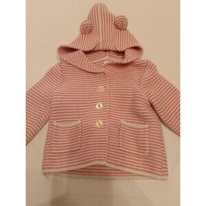 Baby Gap Garter Sweater Cardigan Pink White Striped Girls Size 12-18 Months. In good pre-owned condition. No holes or stains. Pet free and smoke free.